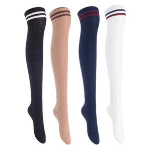 Lian Lifestyle Women's 4 Pairs Incredible Durable Super Soft Unique Over Knee High Thigh High Cotton Socks, Size US 6-9, JMYP1023 (Black, Khaki, Navy, White)