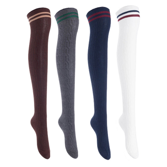 Lian Lifestyle Women's 4 Pairs Incredible Durable Super Soft Unique Over Knee High Thigh High Cotton Socks, Size US 6-9, JMYP1023 (Coffee, Dark Gray, Navy, White)