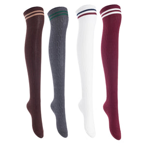 Lian Lifestyle Women's 4 Pairs Incredible Durable Super Soft Unique Over Knee High Thigh High Cotton Socks, Size US 6-9, JMYP1023 (Coffee, Dark Gray, White, Wine)