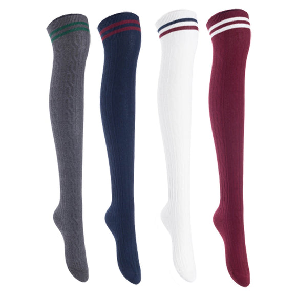 Lian Lifestyle Women's 4 Pairs Incredible Durable Super Soft Unique Over Knee High Thigh High Cotton Socks, Size US 6-9, JMYP1023 (Dark Gray, Navy, White, Wine)