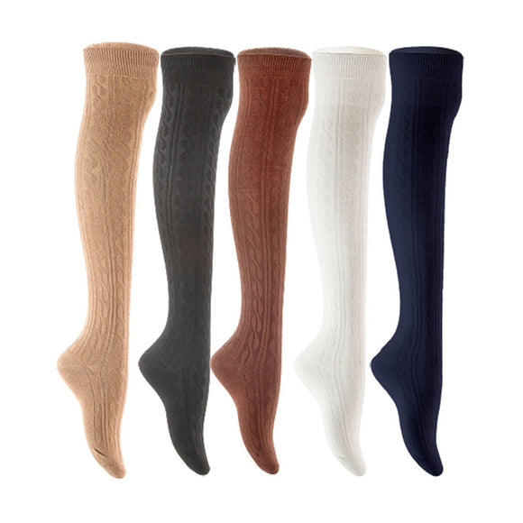 Lian LifeStyle Women's 5 Pair Adorable Comfortable Soft Thigh High Over Knee High Cotton Socks Size 6-9 L1024 (Beige,Black,Coffee,White,Navy)