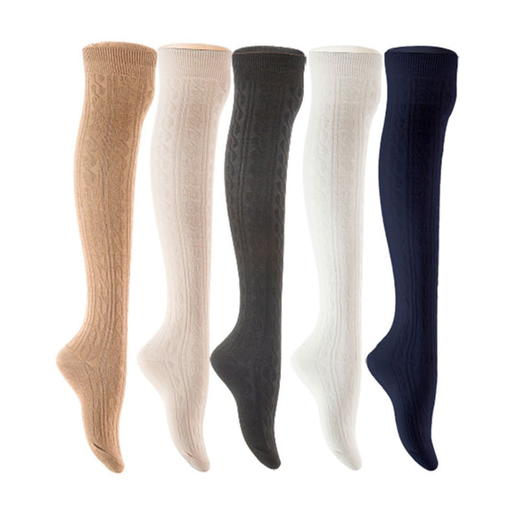Lian LifeStyle Women's 5 Pair Adorable Comfortable Soft Thigh High Over Knee High Cotton Socks Size 6-9 L1024 (Beige,Cream,Black,White,Navy)