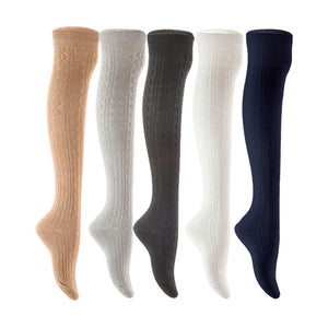 Lian LifeStyle Women's 5 Pair Adorable Comfortable Soft Thigh High Over Knee High Cotton Socks Size 6-9 L1024 (Beige,Light Grey,Black,White,Navy)