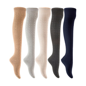Lian LifeStyle Women's 5 Pair Adorable Comfortable Soft Thigh High Over Knee High Cotton Socks Size 6-9 L1024 (Beige,Light Grey,Cream,Black,Navy)