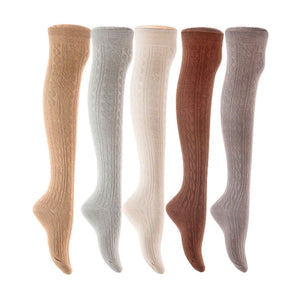 Lian LifeStyle Women's 5 Pair Adorable Comfortable Soft Thigh High Over Knee High Cotton Socks Size 6-9 L1024 (Beige,Light Grey,Cream,Coffee,Dark Grey)