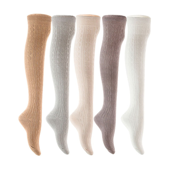 Lian LifeStyle Women's 5 Pair Adorable Comfortable Soft Thigh High Over Knee High Cotton Socks Size 6-9 L1024 (Beige,Light Grey,Cream,Dark Grey,White)