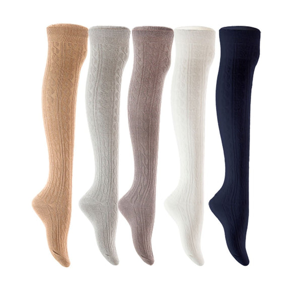 Lian LifeStyle Women's 5 Pair Adorable Comfortable Soft Thigh High Over Knee High Cotton Socks Size 6-9 L1024 (Beige,Light Grey,Dark Grey,White,Navy)