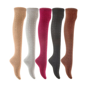 Lian LifeStyle Women's 5 Pair Adorable Comfortable Soft Thigh High Over Knee High Cotton Socks Size 6-9 L1024 (Beige,Light Grey,Wine,Black,Coffee)