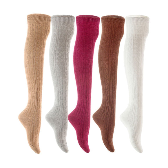 Lian LifeStyle Women's 5 Pair Adorable Comfortable Soft Thigh High Over Knee High Cotton Socks Size 6-9 L1024 (Beige,Light Grey,Wine,Coffee,White)