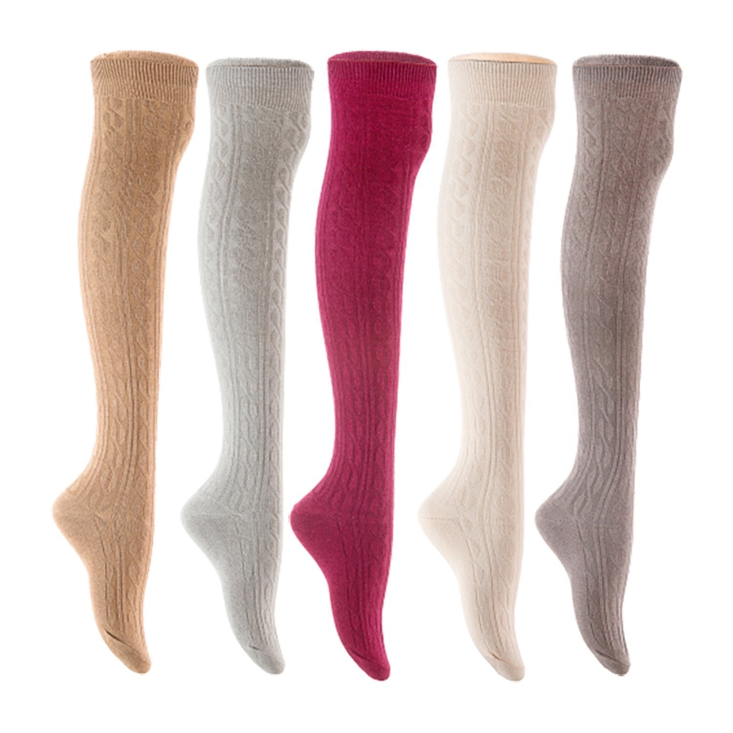 Lian LifeStyle Women's 5 Pair Adorable Comfortable Soft Thigh High Over Knee High Cotton Socks Size 6-9 L1024 (Beige,Light Grey,Wine,Cream,Dark Grey)