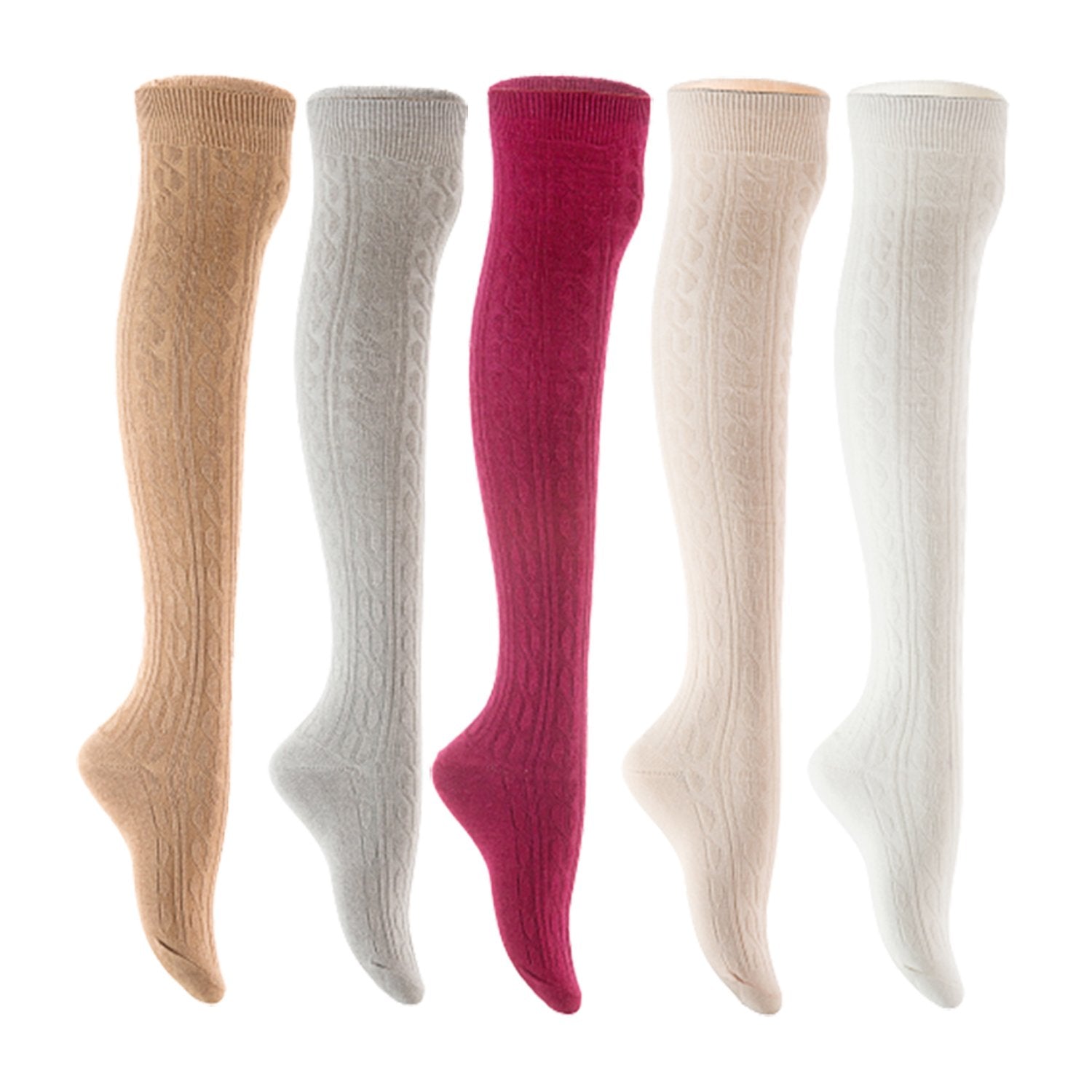 Lian LifeStyle Women's 5 Pair Adorable Comfortable Soft Thigh High Over Knee High Cotton Socks Size 6-9 L1024 (Beige,Light Grey,Wine,Cream,White)