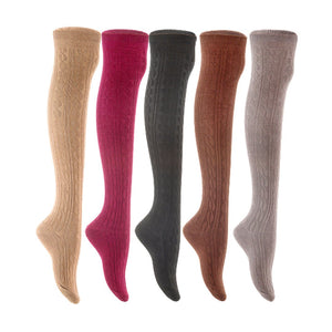 Lian LifeStyle Women's 5 Pair Adorable Comfortable Soft Thigh High Over Knee High Cotton Socks Size 6-9 L1024 (Beige,Wine,Black,Coffee,Dark Grey)