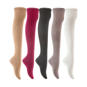 Lian LifeStyle Women's 5 Pair Adorable Comfortable Soft Thigh High Over Knee High Cotton Socks Size 6-9 L1024 (Beige,Wine,Black,Dark Grey,White)