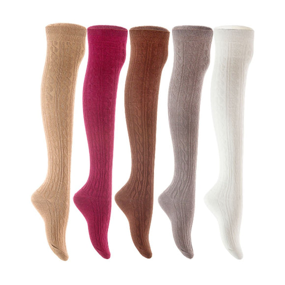 Lian LifeStyle Women's 5 Pair Adorable Comfortable Soft Thigh High Over Knee High Cotton Socks Size 6-9 L1024 (Beige,Wine,Coffee,Dark Grey,White)