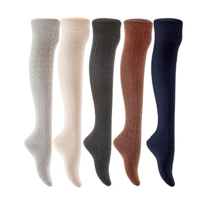 Lian LifeStyle Women's 5 Pair Adorable Comfortable Soft Thigh High Over Knee High Cotton Socks Size 6-9 L1024 (Light Grey,Cream,Black,Coffee,Navy)