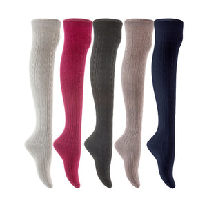 Lian LifeStyle Women's 5 Pair Adorable Comfortable Soft Thigh High Over Knee High Cotton Socks Size 6-9 L1024 (Light Grey,Wine,Black,Dark Grey,Navy)