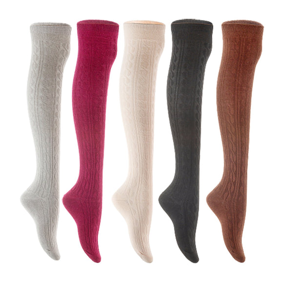 Lian LifeStyle Women's 5 Pair Adorable Comfortable Soft Thigh High Over Knee High Cotton Socks Size 6-9 L1024 (Light Grey,Wine,Cream,Black,Coffee)