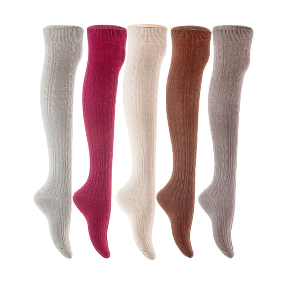 Lian LifeStyle Women's 5 Pair Adorable Comfortable Soft Thigh High Over Knee High Cotton Socks Size 6-9 L1024 (Light Grey,Wine,Cream,Coffee,Dark Grey)