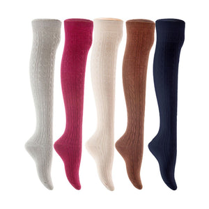 Lian LifeStyle Women's 5 Pair Adorable Comfortable Soft Thigh High Over Knee High Cotton Socks Size 6-9 L1024 (Light Grey,Wine,Cream,Coffee,Navy)