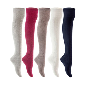 Lian LifeStyle Women's 5 Pair Adorable Comfortable Soft Thigh High Over Knee High Cotton Socks Size 6-9 L1024 (Light Grey,Wine,Dark Grey,White,Navy)