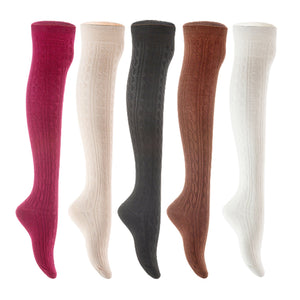 Lian LifeStyle Women's 5 Pair Adorable Comfortable Soft Thigh High Over Knee High Cotton Socks Size 6-9 L1024 (Wine,Cream,Black,Coffee,White)