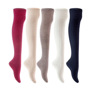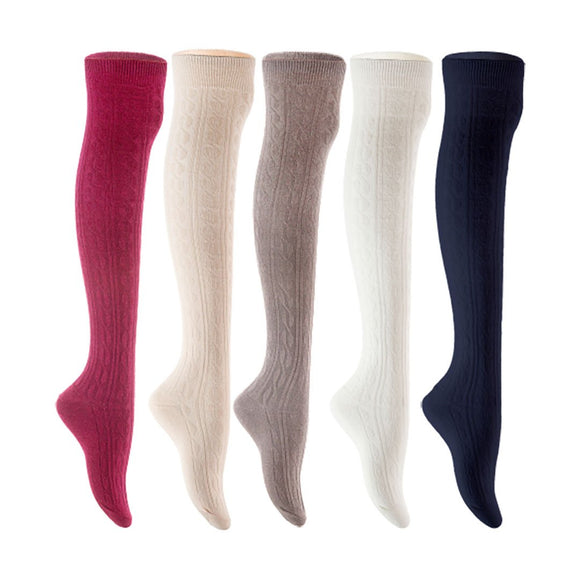 Lian LifeStyle Women's 5 Pair Adorable Comfortable Soft Thigh High Over Knee High Cotton Socks Size 6-9 L1024 (Wine,Cream,Dark Grey,White,Navy)