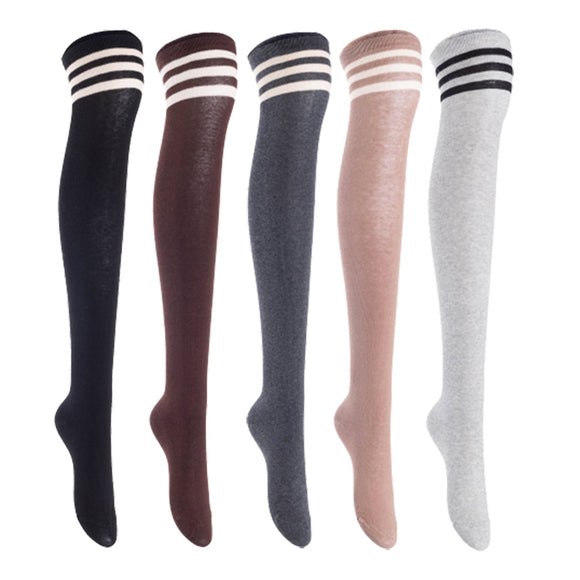 Lian LifeStyle Women's 5 Pairs Adorable Comfortable Soft Thigh High Over Knee High Cotton Socks, Size 6-9, JMYP1022 (Black, Coffee, DarkGrey, Khaki, LightGrey)
