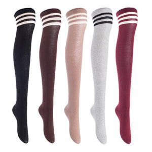 Lian LifeStyle Women's 5 Pairs Adorable Comfortable Soft Thigh High Over Knee High Cotton Socks, Size 6-9, JMYP1022 (Black, Coffee, Khaki, LightGrey, Wine)