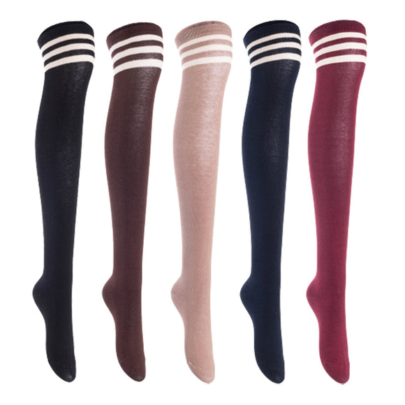 Lian LifeStyle Women's 5 Pairs Adorable Comfortable Soft Thigh High Over Knee High Cotton Socks, Size 6-9, JMYP1022 (Black, Coffee, Khaki, Navy, Wine)