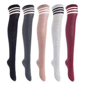Lian LifeStyle Women's 5 Pairs Adorable Comfortable Soft Thigh High Over Knee High Cotton Socks, Size 6-9, JMYP1022 (Black, DarkGrey, Khaki, LightGrey, Wine)