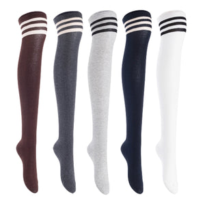 Lian LifeStyle Women's 5 Pairs Adorable Comfortable Soft Thigh High Over Knee High Cotton Socks, Size 6-9, JMYP1022 (Coffee, DarkGrey, LightGrey, Navy, White)