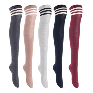 Lian LifeStyle Women's 5 Pairs Adorable Comfortable Soft Thigh High Over Knee High Cotton Socks, Size 6-9, JMYP1022 (DarkGrey, Khaki, LightGrey, Navy, Wine)