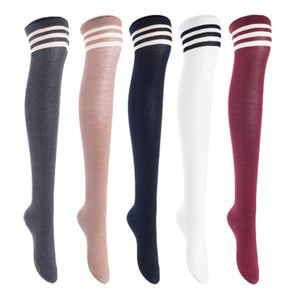 Lian LifeStyle Women's 5 Pairs Adorable Comfortable Soft Thigh High Over Knee High Cotton Socks, Size 6-9, JMYP1022 (DarkGrey, Khaki, Navy, White, Wine)