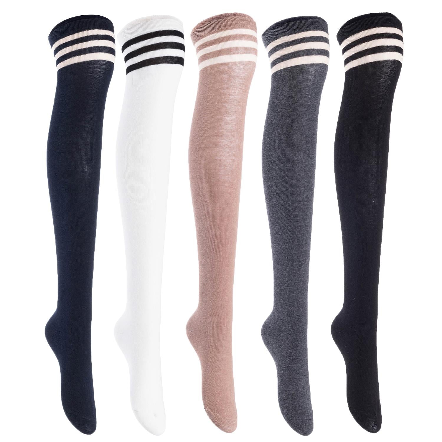Lian LifeStyle Women's 5 Pairs Adorable Comfortable Soft Thigh High Over Knee High Cotton Socks Size 6-9 L1022(Assorted)