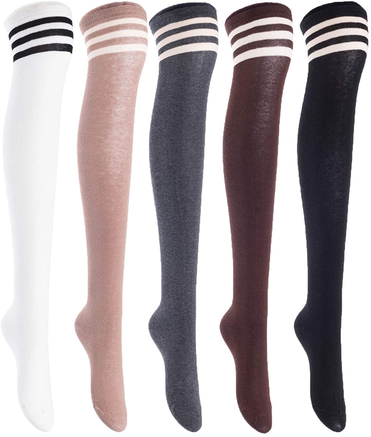 Lian LifeStyle Women's 5 Pairs Adorable Comfortable Soft Thigh High Over Knee High Cotton Socks Size 6-9 L1022(Black,Coffee,DG,Khaki,White)