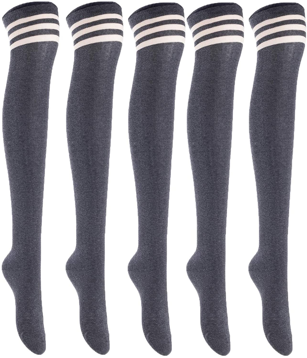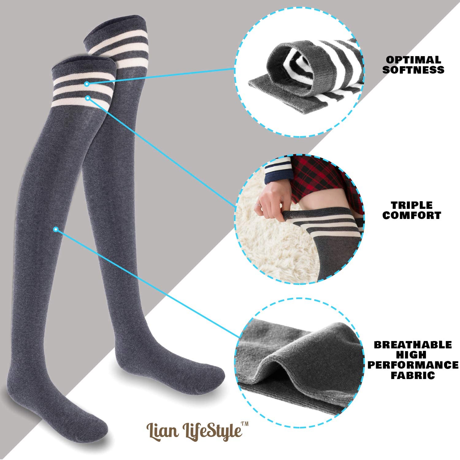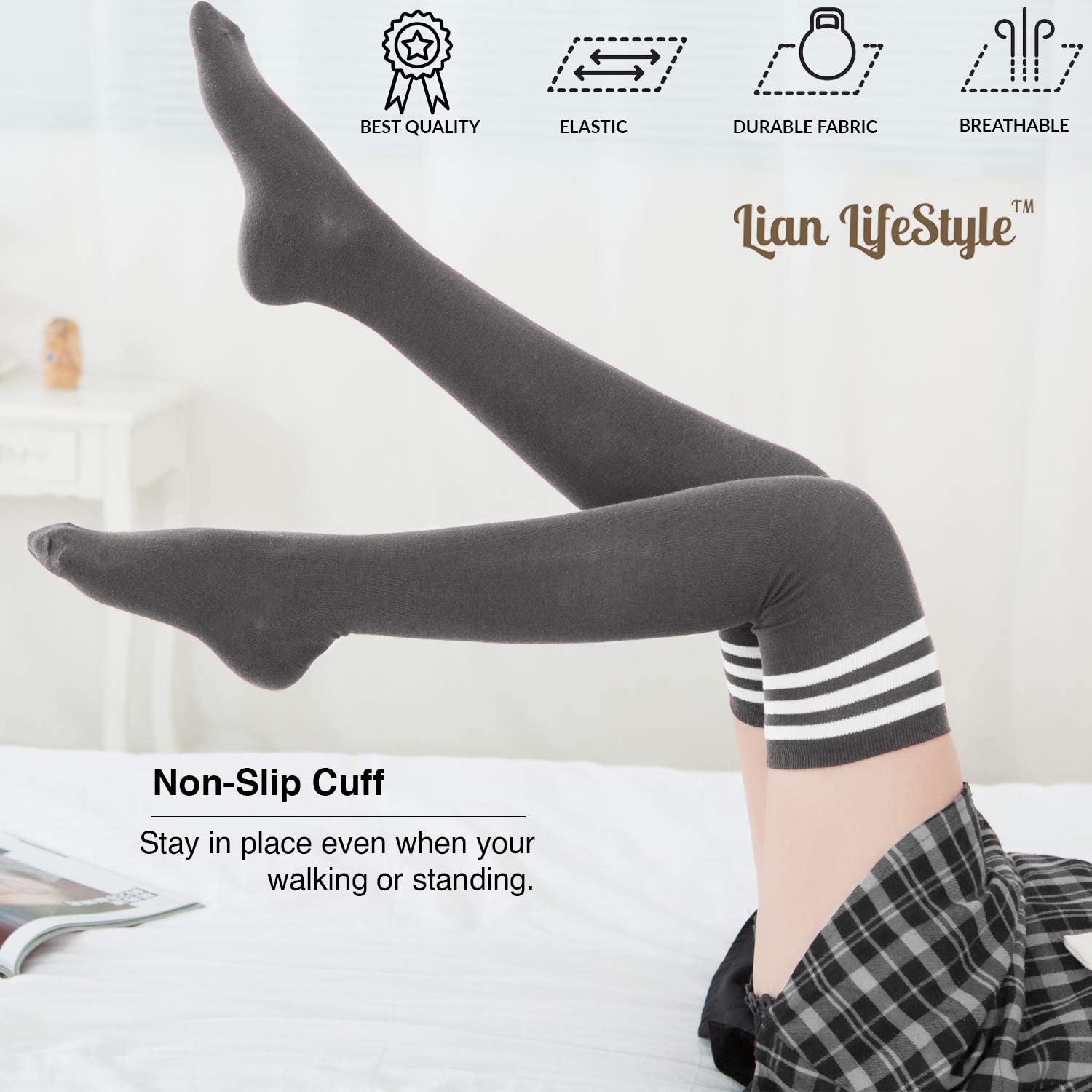 Lian LifeStyle Women's 5 Pairs Adorable Comfortable Soft Thigh High Over Knee High Cotton Socks Size 6-9 L1022(Dark Grey)
