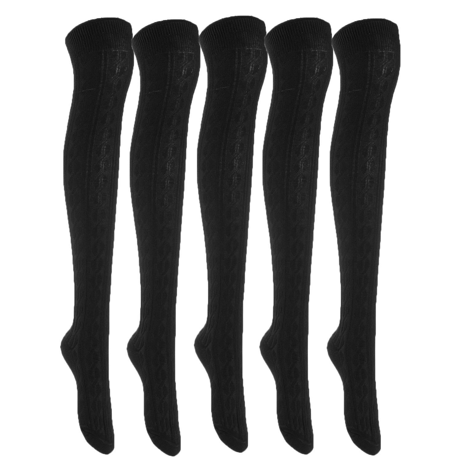 Lian LifeStyle Women's 5 Pairs Adorable Comfortable Soft Thigh High Over Knee High Cotton Socks Size 6-9 L1024 (Black)
