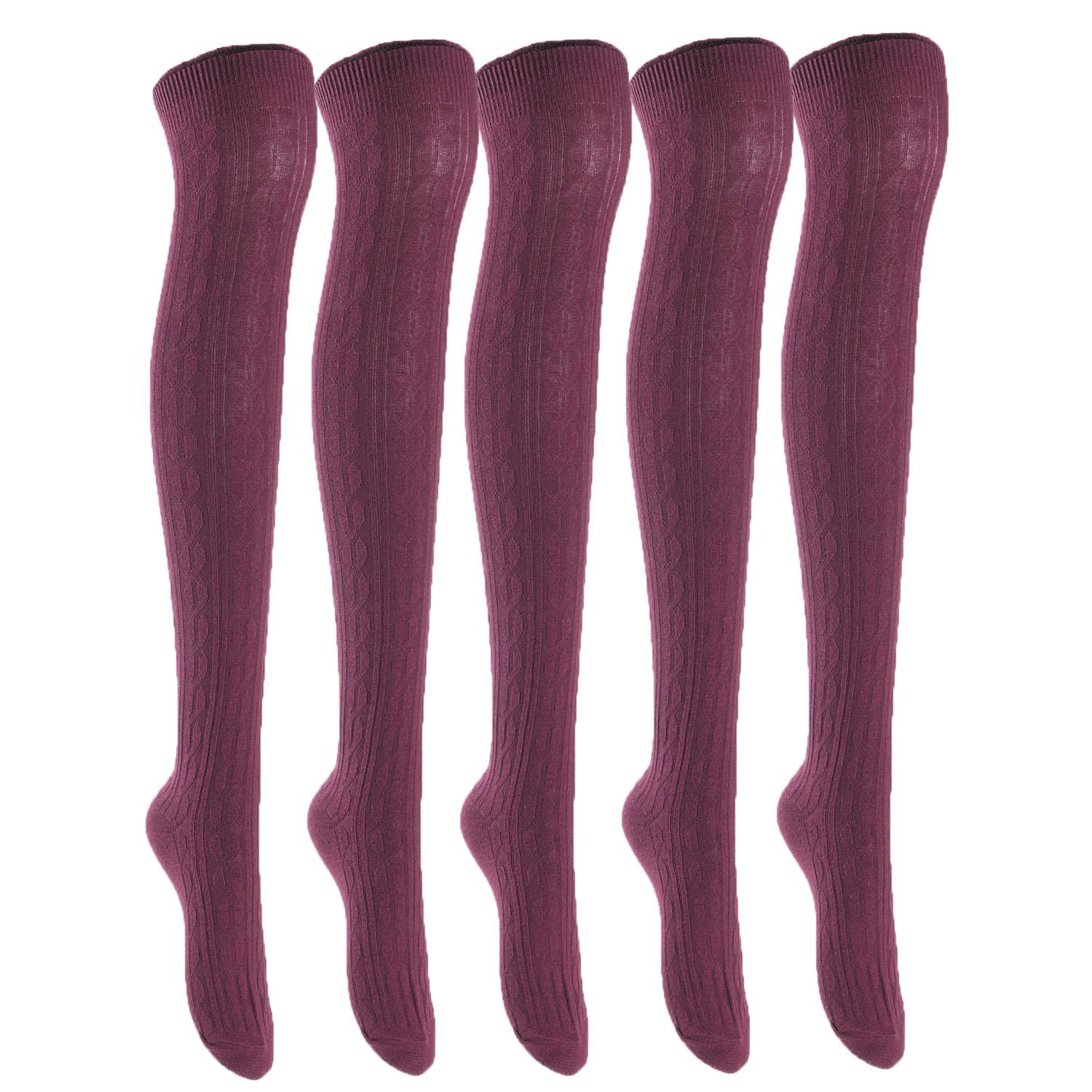 Lian LifeStyle Women's 5 Pairs Adorable Comfortable Soft Thigh High Over Knee High Cotton Socks Size 6-9 L1024 (Wine)