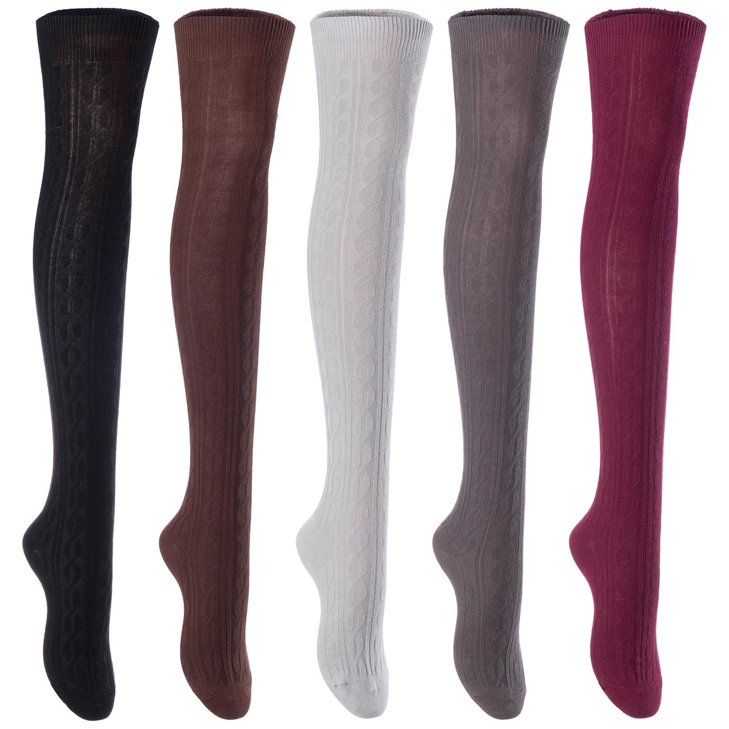 Lian LifeStyle Women's 5 Pairs Adorable Comfortable Soft Thigh High Over Knee High Cotton Socks Size 6-9 L1024(Assorted)