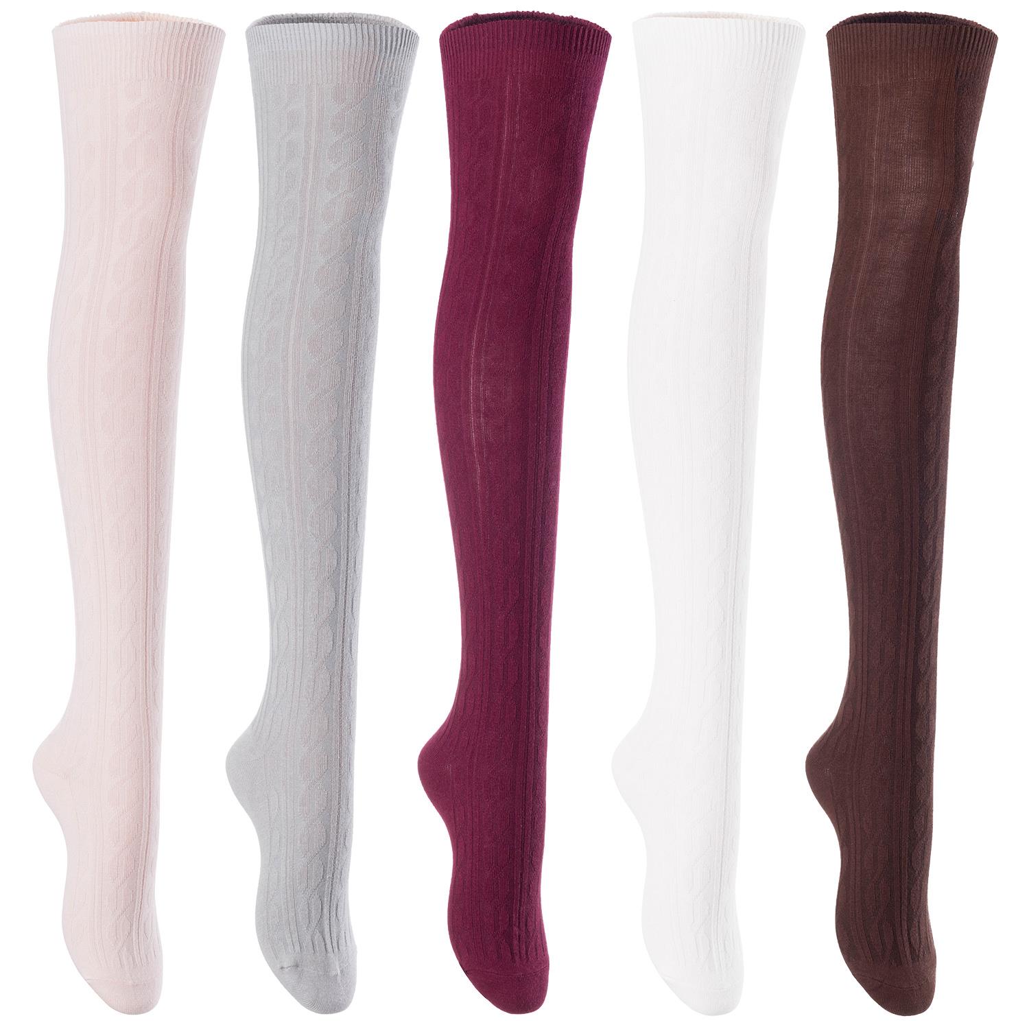 Lian LifeStyle Women's 5 Pairs Adorable Comfortable Soft Thigh High Over Knee High Cotton Socks Size 6-9 L1024(Beige,LG,Wine,Cream,Coffee)