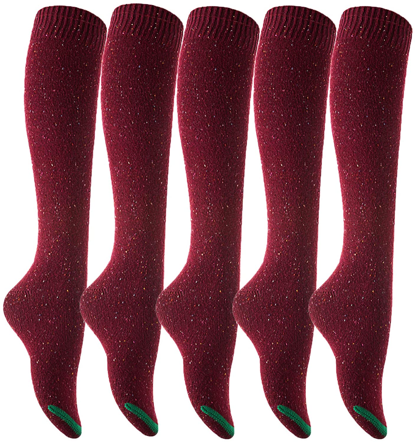 Lian LifeStyle Women's 5 Pairs Awesome Breathable Fancy and Cozy Knee High Cotton Boot Socks Size 6-9(Wine)