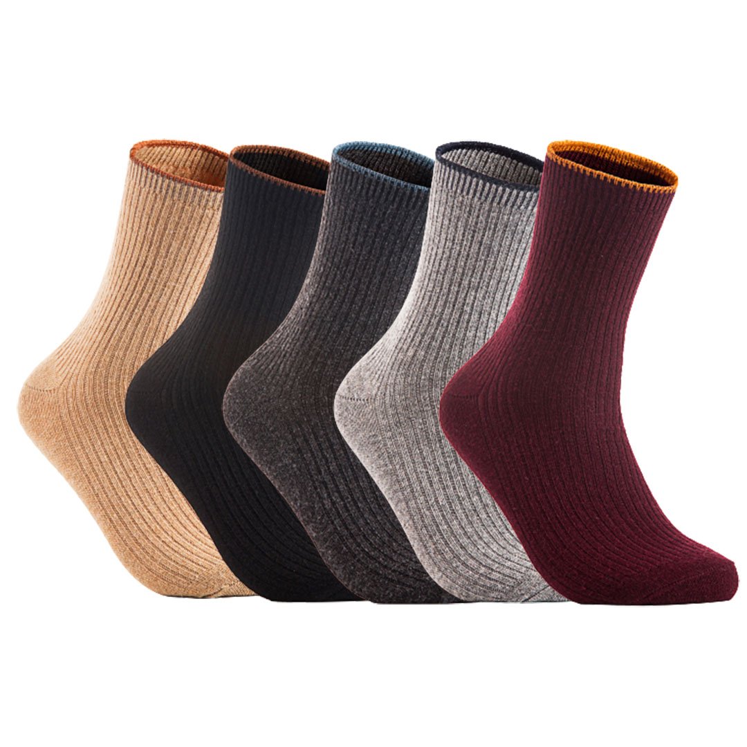 Lian LifeStyle Women's 5 Pairs Cute & Comfortable Wool Crew Socks Size 6-9 HR1612, Color (Beige, Black, DarkGrey, Grey, Wine)