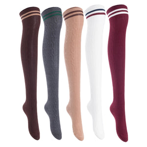 Lian Lifestyle Women's 5 Pairs Incredible Durable Super Soft Unique Over Knee High Thigh High Cotton Socks, Size US 6-9, JMYP1023 (Coffee, Dark Gray, Khaki, White, Wine)