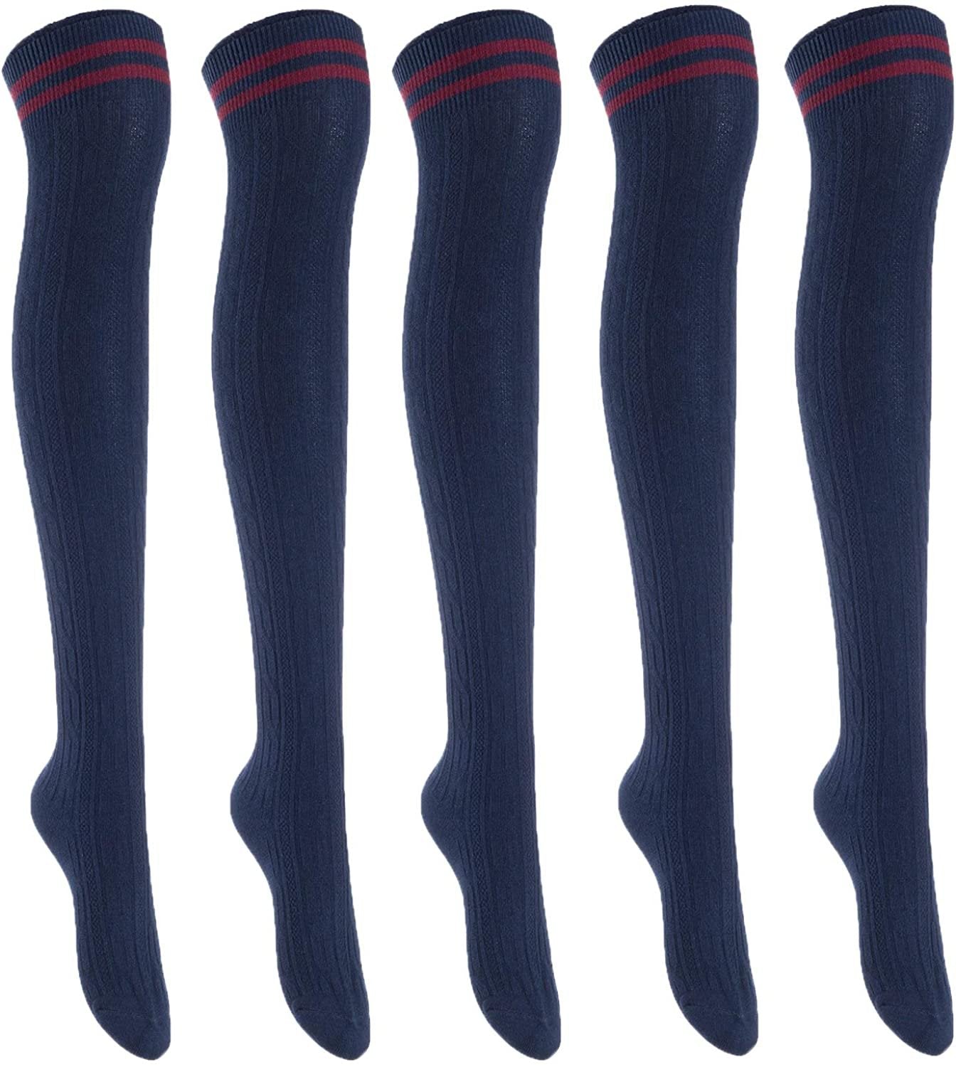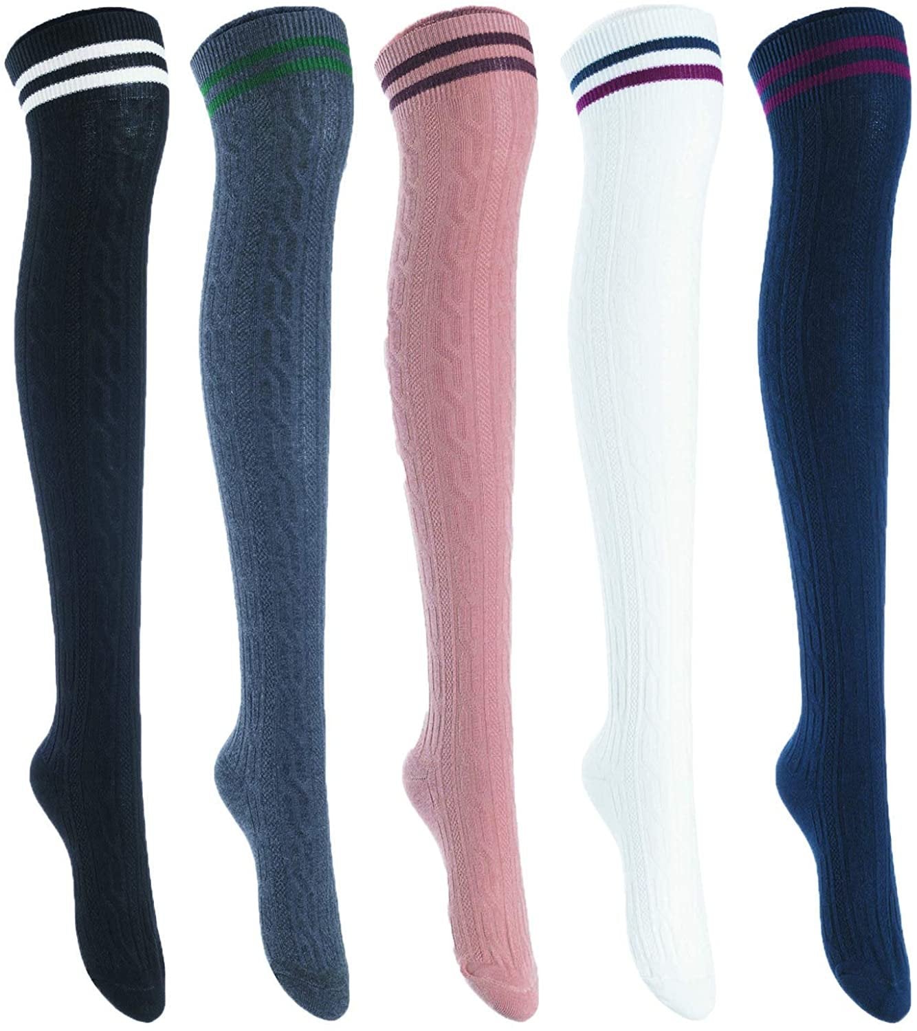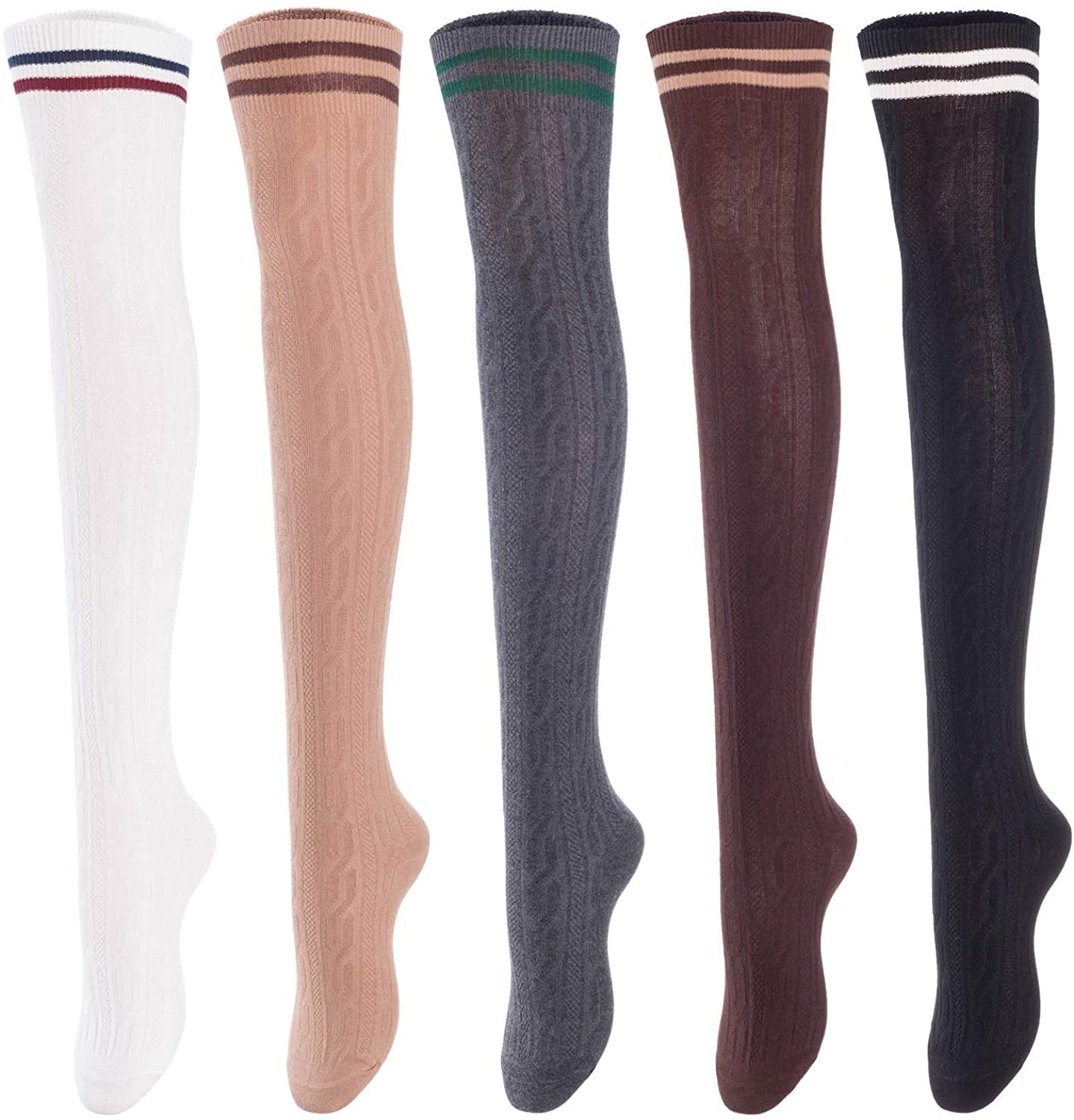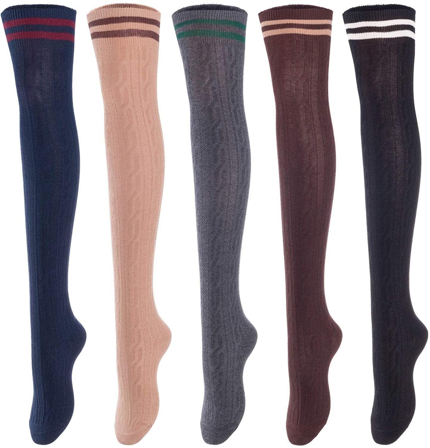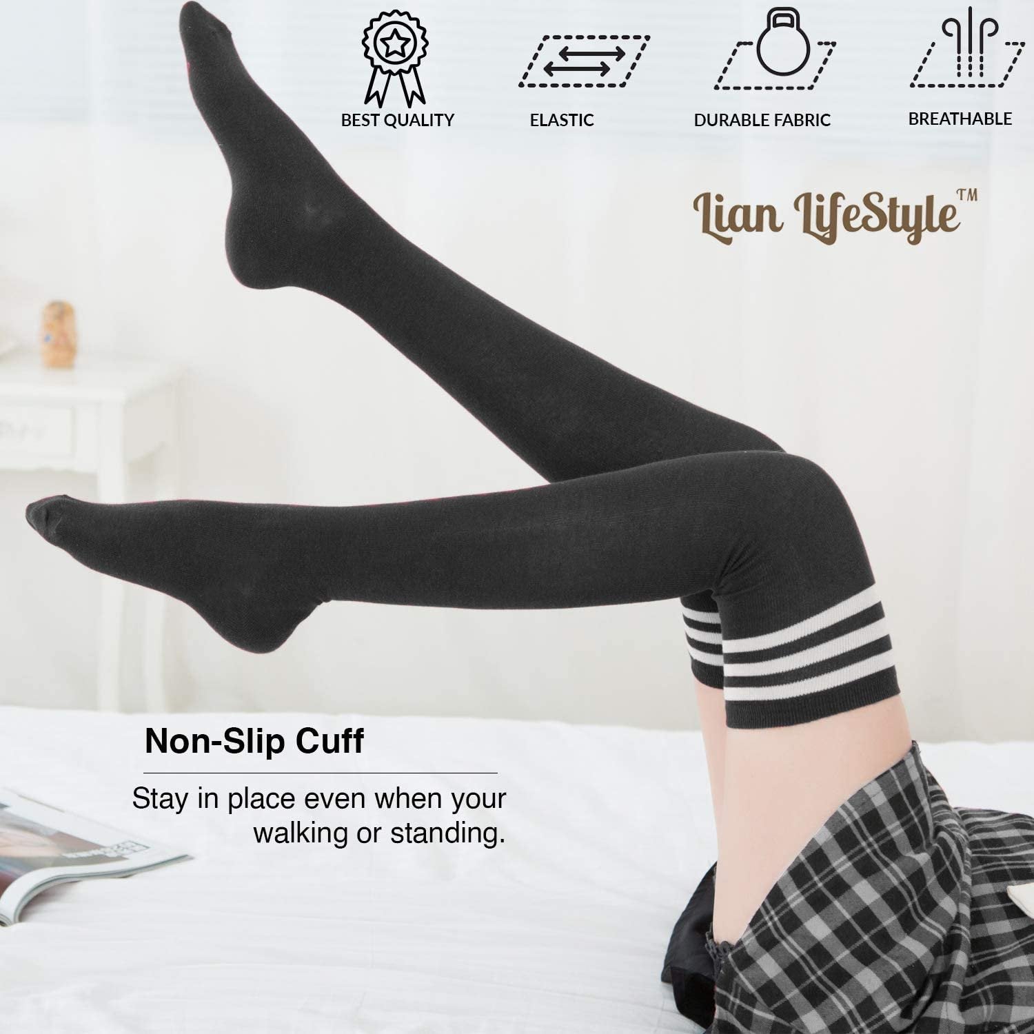 Lian LifeStyle Women's 5 Pairs Knee High Thigh High Cotton Socks Size 6-9 L1023