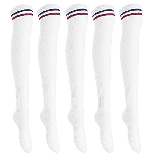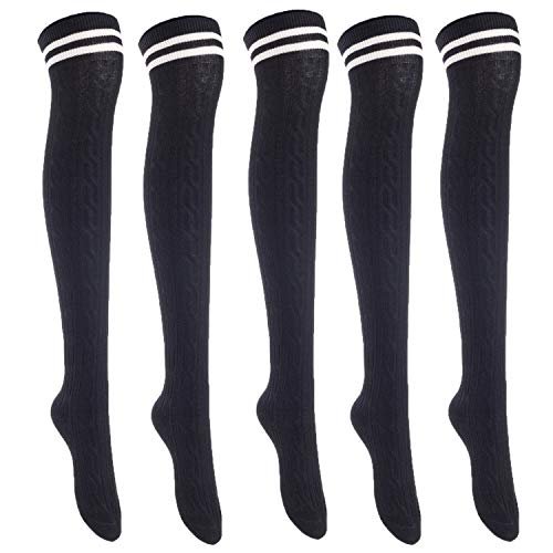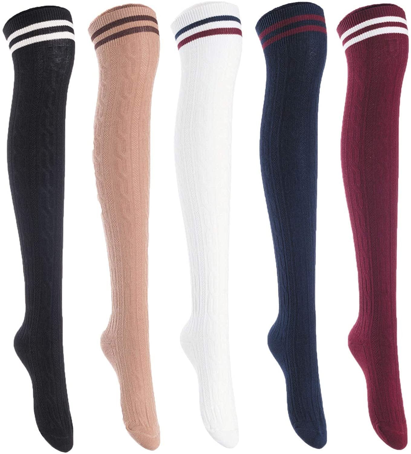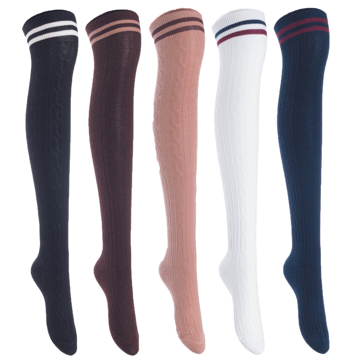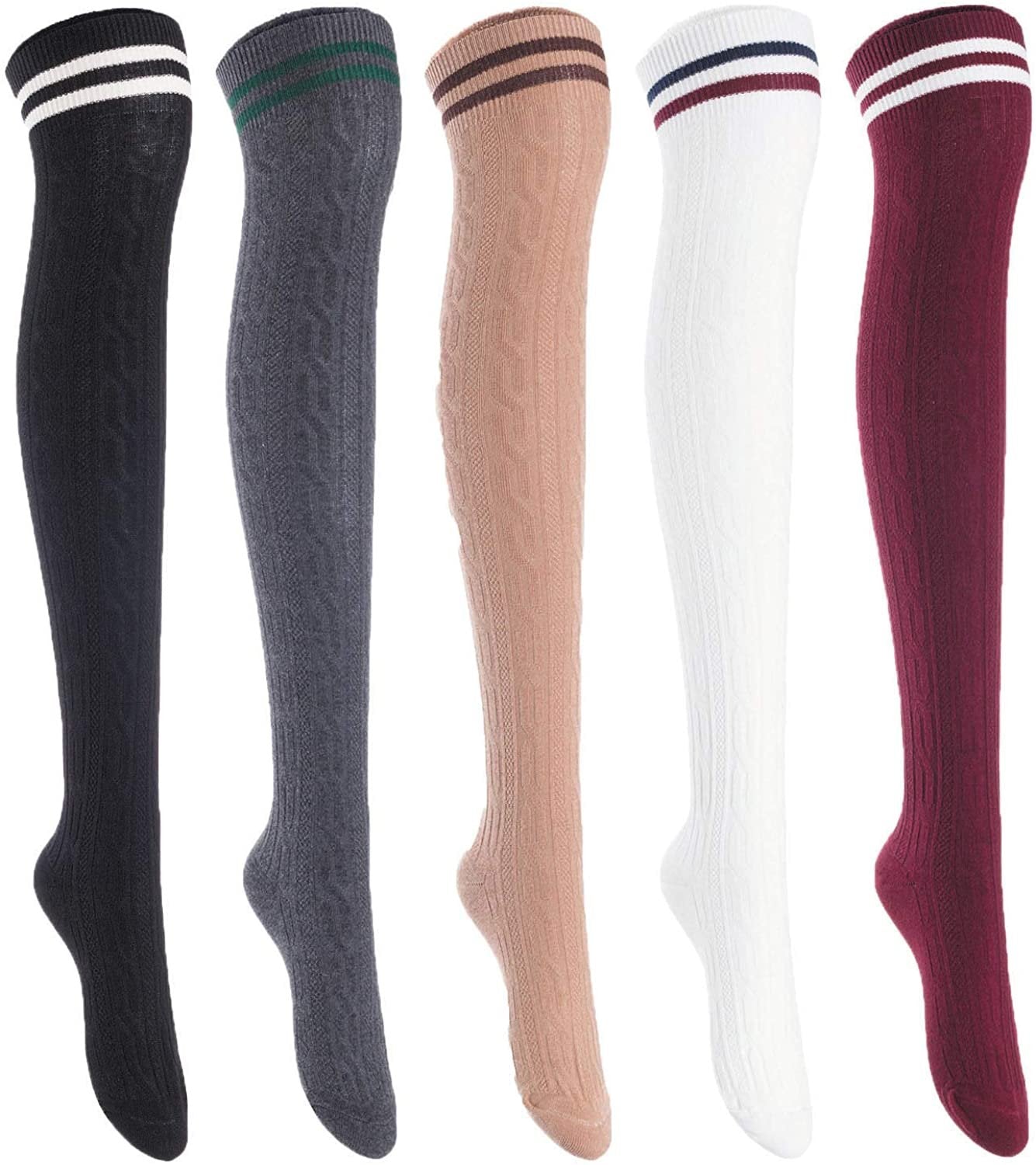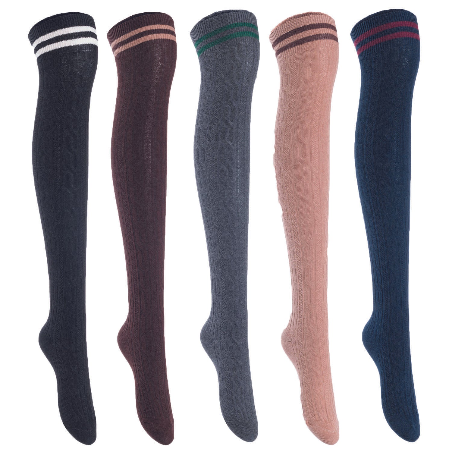 Lian LifeStyle Women's 5 Pairs Knee High Thigh High Cotton Socks Size 6-9 L1023