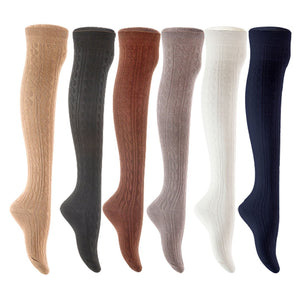 Lian LifeStyle Women's 6 Pair Adorable Comfortable Soft Thigh High Over Knee High Cotton Socks Size 6-9 L1024 (Beige,Black,Coffee,Dark Grey,White,Navy)