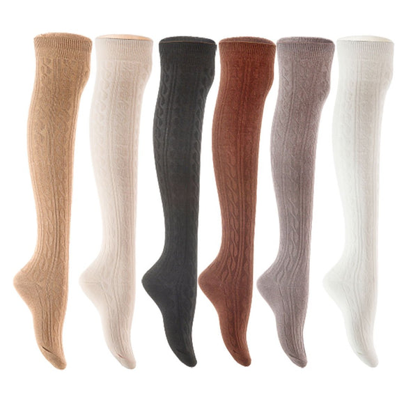 Lian LifeStyle Women's 6 Pair Adorable Comfortable Soft Thigh High Over Knee High Cotton Socks Size 6-9 L1024 (Beige,Cream,Black,Coffee,Dark Grey,White)