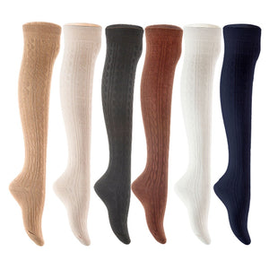 Lian LifeStyle Women's 6 Pair Adorable Comfortable Soft Thigh High Over Knee High Cotton Socks Size 6-9 L1024 (Beige,Cream,Black,Coffee,White,Navy)