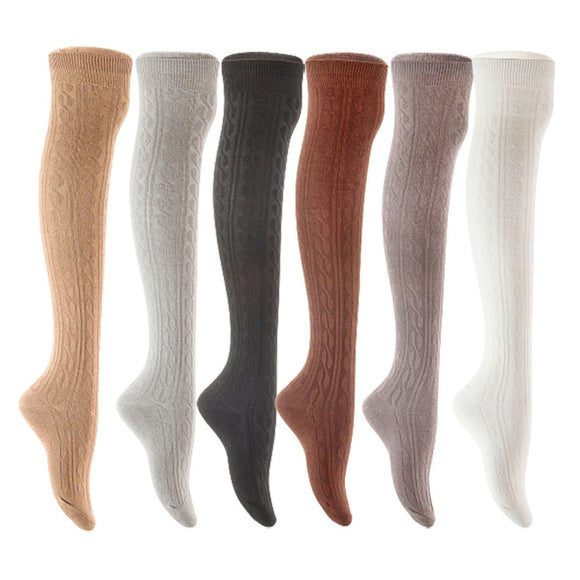 Lian LifeStyle Women's 6 Pair Adorable Comfortable Soft Thigh High Over Knee High Cotton Socks Size 6-9 L1024 (Beige,Light Grey,Black,Coffee,Dark Grey,White)