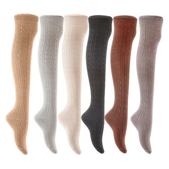 Lian LifeStyle Women's 6 Pair Adorable Comfortable Soft Thigh High Over Knee High Cotton Socks Size 6-9 L1024 (Beige,Light Grey,Cream,Black,Coffee,Dark Grey)